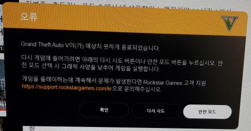 현재 GTA5를 플레이하시다 보면 간헐적으로 (약 30분단위) 튕기는 현상이 발생하고 있습니다. ( 안전모드도 똑같음 )