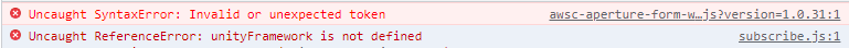 Unity WebGL 빌드 후 S3에 업로드 뒤 링크를 통해 실행할 경우 다음과 같은 에러가 발생.
