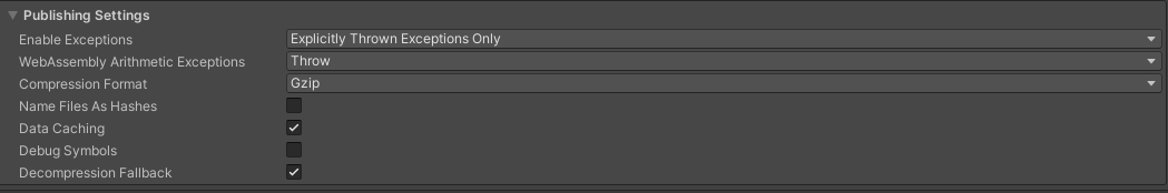 Project Settings - Player - WebGL settings ( tab ) - Publishing Settings